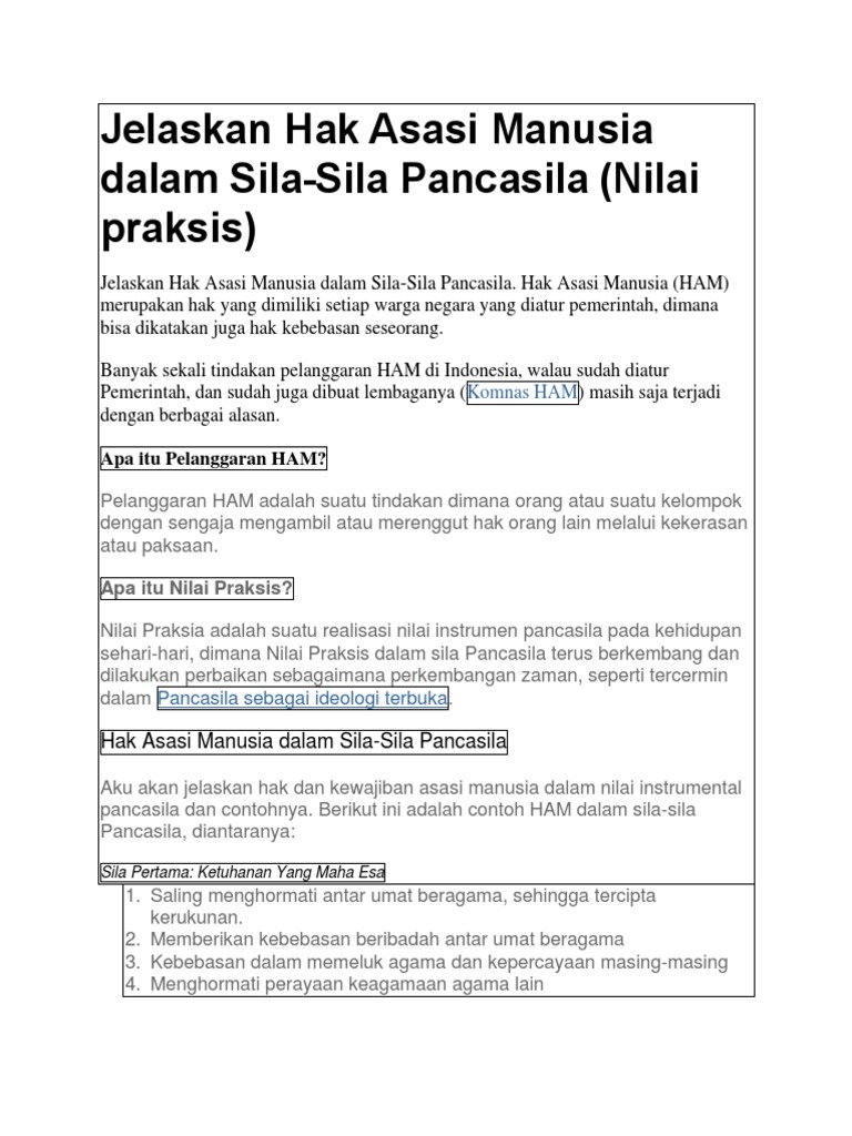 Substansi Hak Asasi Manusia Dalam Pancasila Dalam Nilai Ideal Nilai Instrumental Dan Nilai Praksis